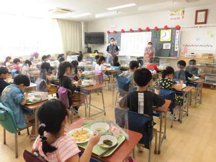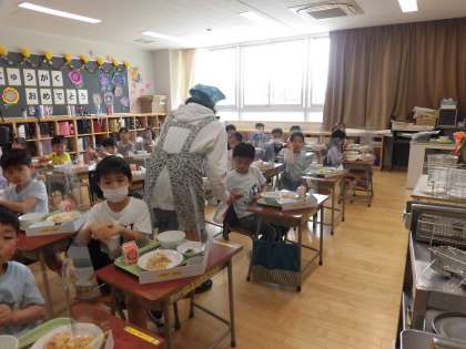 4/13 給食の時間の様子(1年生 初めての給食)1