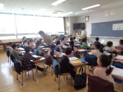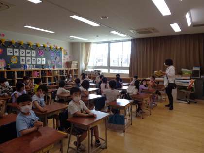 出席をとっていたり、給食の確認をしていたり、落ち着いて過ごしていました。