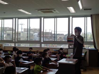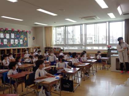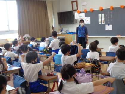こちらのクラスでは、給食のやり方の確認をしていたり、体育着に着替えていたりしていました。