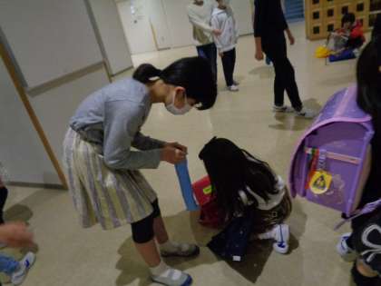 1年生が安心できるように、一生懸命な6年生の姿が本当にすてきです。