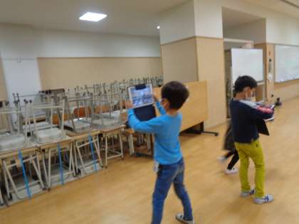 今日は、いろいろな教室を回ってタブレットで写真を撮りました。次回は、その写真を見ながら説明する言葉を考えます。みんなとても意欲的に活動していました。