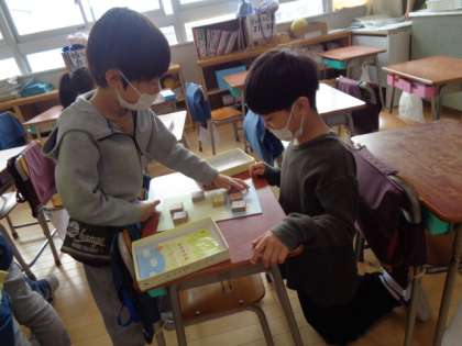 低学年は、室内遊びです。カードゲームやボードゲームなどとても楽しそうに遊んでいました。