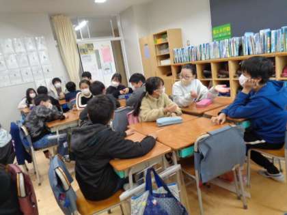 6年生は、卒業というゴールに向けて、そこまでにどんなクラスや自分になっていたいかを考えます。言葉を出し合い、グループで話し合っていました。