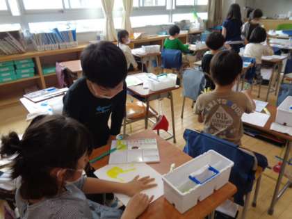 昨日の2年生の様子です。初めての6時間授業です。みんなで活動して、楽しんでほしいと思いました。