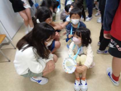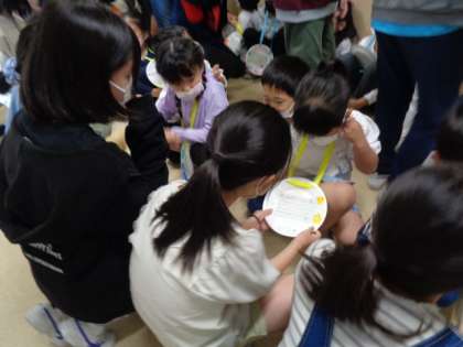 6年生が1年生のところへ来てくれました。6年生が手をつないだり、話しかけたりしてくれました。1年生は、本当に安心して、笑顔が見られました。このようなつながりが学校のすてきなところです。