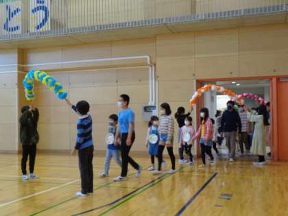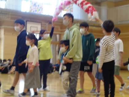 お花のアーチを持ってくれたのは、代表委員の5、6年生です。