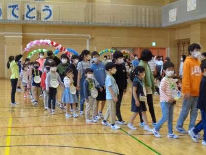 ピアノの演奏に合わせて、1年生の入場です。6年生が1年生の歩調に合わせてくれて、ゆっくり歩いてくれました。