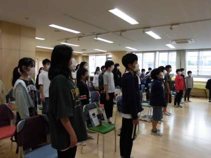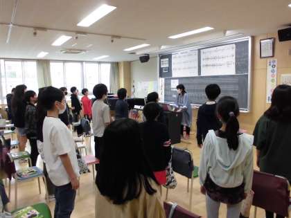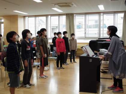 「翼をください」という歌を歌っていました。本当に美しい歌声が響きわたっていました。姿勢やマスク越しの表情からすてきな歌声が伝わってくるでしょうか。みんな、一生懸命でした。