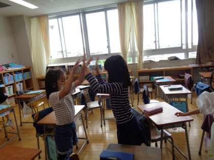「世界の踊りの音楽を楽しもう」という鑑賞の授業です。いろいろの国の音楽を流しました。すると、手を叩いたり、歩き回ったりと自然と体が動いていました。そして、友達と一緒に楽しんでいました。