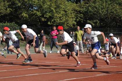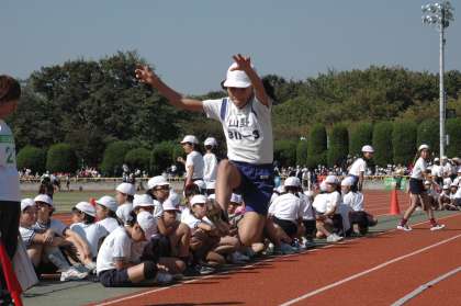 素晴らしい快晴の天気の下、砧総合運動場で23年度の連合運動会がありました。3日間で行われる連合運動会、今日Cグループは22校が集まり、それぞれの力をぶつけ合いました。種目は、100m走、50mハードル、走り幅跳び、走り高跳びの中から1種目選び全員が参加します。選抜は、男女の400mリレー。そして、各クラスごとの5分間長縄八の字跳びです。