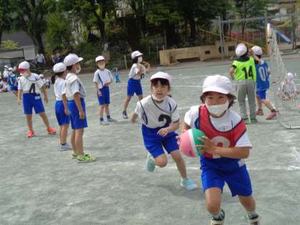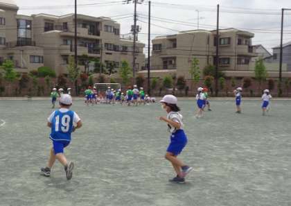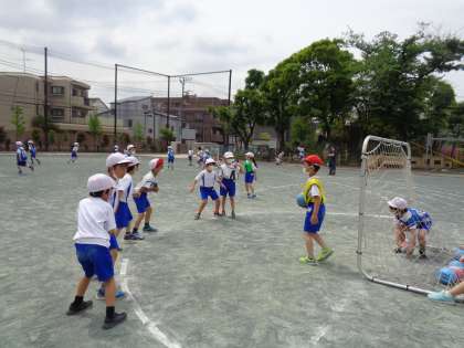 今日は、ルールを知り、やり方を覚えました。始めは、難しそうでしたが、やり方が分かると友達と声を掛けあって、連携プレーをしている子もいました。