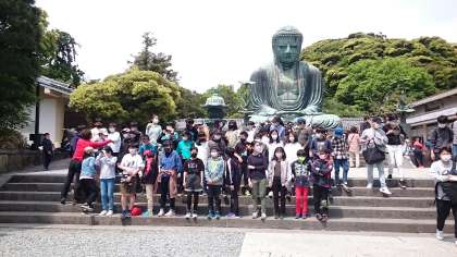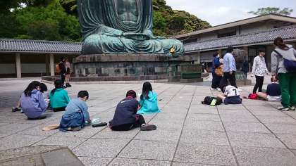 ハイキングコースを抜けて、大仏に着きました。日差しの中、記念写真を取りました。大仏のスケッチも忘れずにしています。