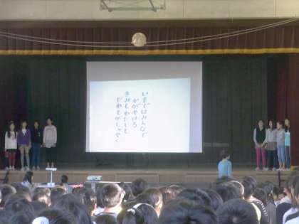 今日の音楽朝会では、フェスタで歌う全員合唱をしました。フェスタの幕開け前にうたう歌、全員が主役という内容で気持ちが高ぶります。一人一人全員が輝くフェスタになるよう、気持ちを込めていきましょう!