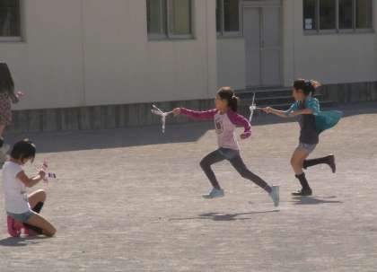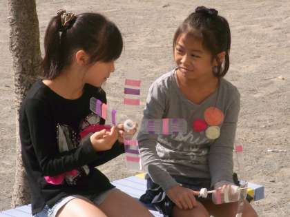 校庭で歓声が上がっています。3年生が理科の授業で風車を作って、回す実験をしていました。風車をもって走ると風車が回ります。でも、うまく回らない子もいます。どうしてだろう、なんでまわらないのかなあ・・。こう思ったらしめたもの。どうして回るようになるのか、自分なりに考えをまとめていきます。友達と相談したり、よく回る子のを見てみたり。理科の面白いのは、こうやって謎解きのように考えていくところなのです。
