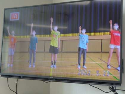 教室では、テレビ中継されていた映像を観ていました。1年生の「代表の言葉」や応援団の「選手宣誓」をしっかりと観て、大きな拍手を送っていました。スポ-フェスタが始まります!!