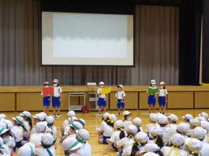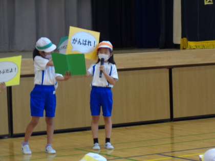 実行委員さんが応援の言葉や手作りの旗を紹介してくれました。みんなで頑張ろうと決意を新たにしまいした。