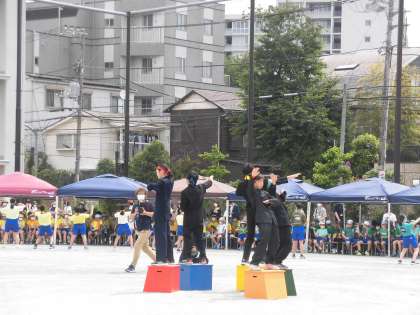 各色の応援の後は、団長が中央に集まり、「フレッ、フレっ、やまの!」で声を合わせました。