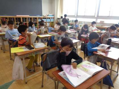 国語の学習に取り組みます。読書や漢字学習をしていたり、話合い活動を行っていたり、各学級落ち着いて過ごしていました。