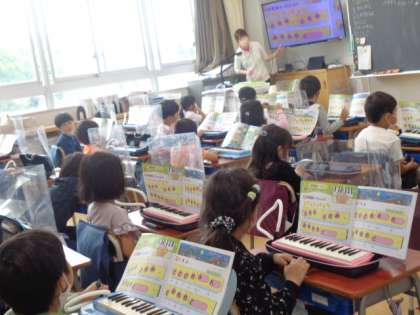 鍵盤ハーモニカに取り組んでいました。ホースをさすところや指の遣い方を一つ一つ確認していました。ゆっくり進めていくので、安心して覚えられます。
