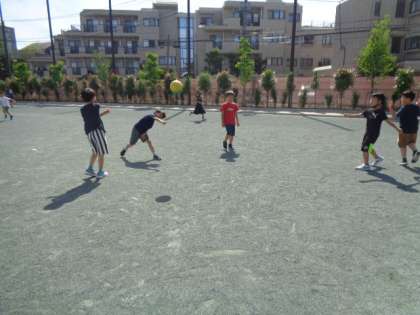 水曜日の朝は、1、2、3年生が校庭で遊ぶことができます。