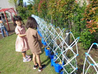20分間、校庭を広々と使い、思いっきり遊んでいました。2年生はトマトに水やりをしている子もいました。