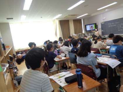 「窓を開けている」「打ち水をしている」など電化製品に頼らなくても工夫できることに気付きました。たくさんのつぶやきや感想の声で教室は活気にあふれていました。
