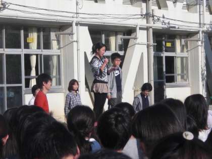 今日の全校朝会では、二つの委員会からお知らせがありました。一つ目は、飼育委員会です。今日から中休みウサギたちを飼育小屋で公開するということと、ウサギたちの名前募集のお知らせでした。二つ目は、運営代表委員からです。みんなの一生懸命な姿を募集するということで、校長室前に、一生懸命箱を設置したということでした。たくさんの一生懸命が入るといいですね。