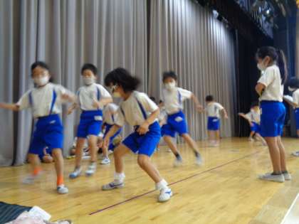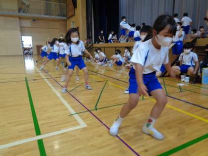 反復横跳びの様子です。2年生も5年生も1回でも記録を伸ばそうと終わりの合図が鳴るまで、懸命に頑張っていました。