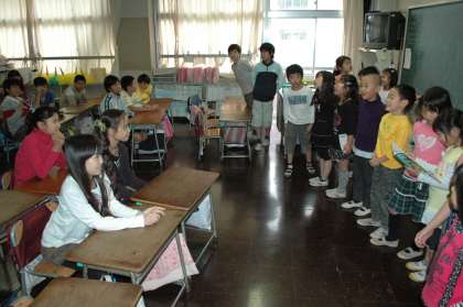 今日は、交流班で、交流給食の時間とロング昼休みの時間を活用して、フェスタの演目について紹介しあう時間がありました。自分たちの作品や演目を分かりやすく人に伝える工夫を通して、互いにフェスタに対する興味・関心を高めることがねらいです。堂々と、自分たちの演目を伝えられていたグループもあれば、ちょっと恥ずかしげなグループもありました。いずれにしろ、あと1週間。自分たちのめあての達成目指して、がんばれ!!
