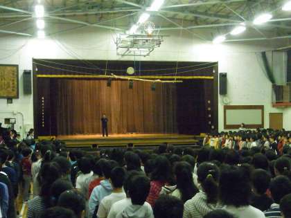 いよいよ来週は「やまのフェスタ」です。フェスタの幕を開ける歌「仲間を信じて」、エンディングの歌「この星に生まれて」を歌いました。体育館は、暗幕がしまり、照明機械も設置され、フェスタに向けて用意万端です。みんなの気持ちも「フェスタ!フェスタ!フェスタ!」