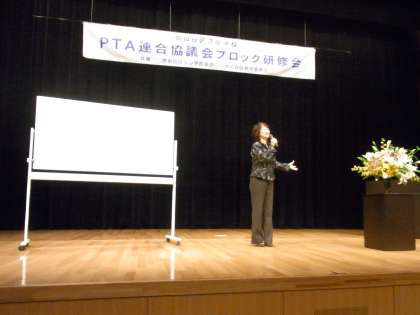 昨日、成城ホールにて第6ブロック研修会が開催されました。他ブロックからの参加者や、世小Pの役員の方など、大勢の方がいらっしゃいました。講演会は藤本裕子先生の「おひとり時間を楽しもう!」というタイトルで行われました。藤本先生は、「お母さん業界新聞」の編集長をされていて、「お母さんはすごい!」という思いでお母さん支援、家庭教育支援を長年続けてこれらています。とても心に残るご講演でした。特に、最後のほうで「お母さんは○○です。」の○の中に当てはまる言葉を会場の一人一人が考え、答えをマイクをバトン代わりにどんどん発表していく時間は、とてもすてきでした。2時間があっという間に過ぎました。