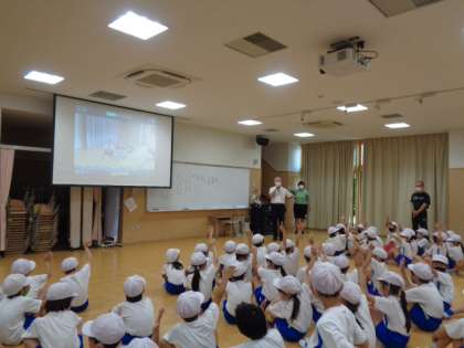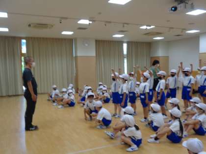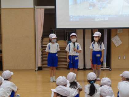 児童代表の言葉では、今年度のプールに向けて頑張りたいことなど決意を述べました。バディーの行い方を練習したり、「リズム水泳」のダンスを行ったりしました。
