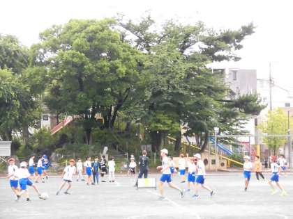 校庭では球技クラブがサッカーをしていました。子供たちで何をするか話し合って決めていました。子供たちが主体となって活動するのがクラブのよさです。