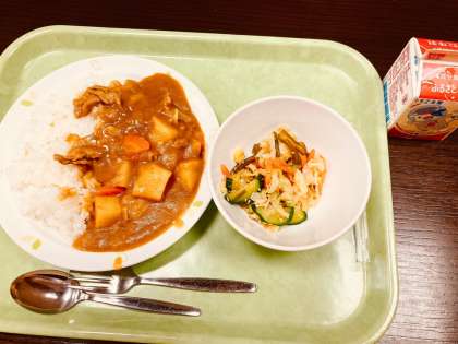 今日は、ポークカレーライス、海藻サラダ、牛乳です。