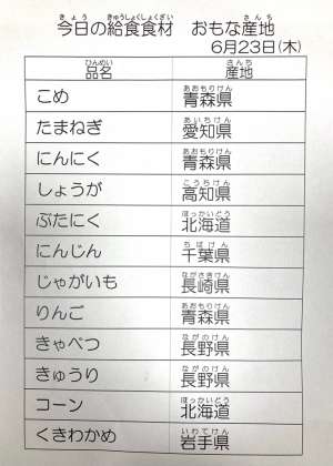 6月23日 今日の給食