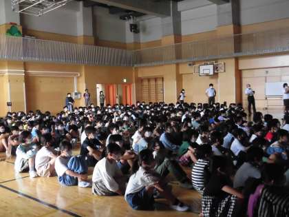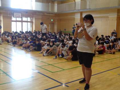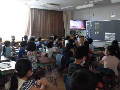 その他の学年は、体育館で行っている様子をテレビに中継して、教室で見ました。