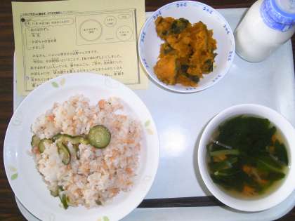 あけぼのずし・牛乳・カボチャの含め煮・すまし汁