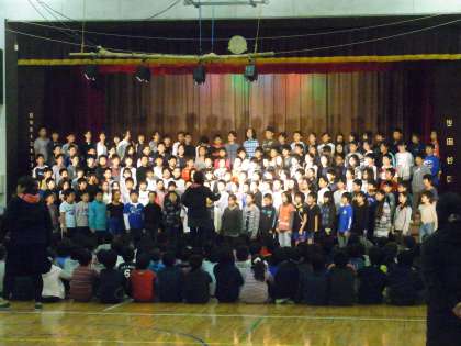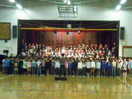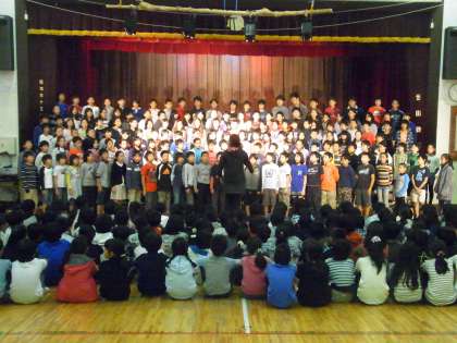 明日からいよいよ「やまのフェスタ」です。最後の最後、体育館で5,6年生全員でエンディングの練習をしました。エンディングは、5年全員合唱、6年全員合唱、そして5,6年全員合唱です。やまのフェスタはそれぞれの演目の成功目指して頑張ってきています。それはまさに、個々の「てっぺん」(目標)達成のためです。でも、最後の最後は全員で心を一つにして全員のてっぺんに到達する瞬間がなくてはなりません。それが、このエンディングです。