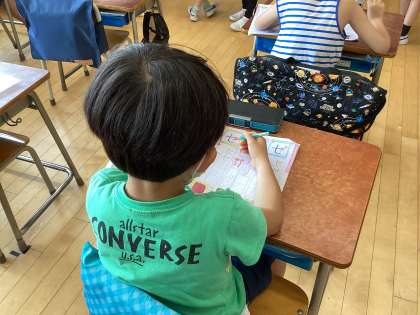 ひらがなを全部習ったので、次はカタカナを覚えます。ひらがなと同じように「とめ、なね、はらい」をしっかりと書いて、正しい字形を覚えていきます。