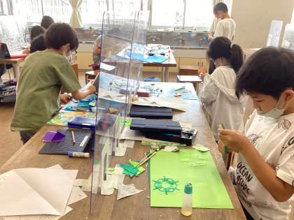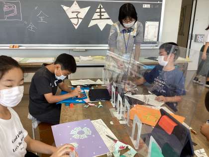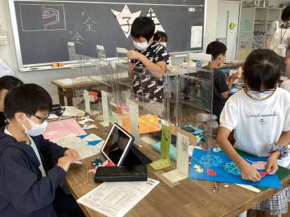 令和の子供たちも、はさみやカッターを駆使して、美しい「紋」を切り抜いていました。