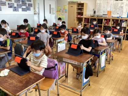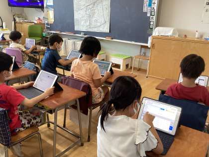 こちらのクラスでは、子供たちの意見から「砧」の町をインターネットで検索して調べてみようということになりました。タブレットの検索機能を使って、一生懸命調べていました。ところが・・・