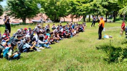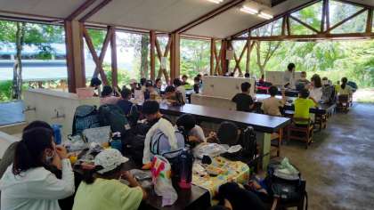 荷物を降ろし、集合写真を撮ったり開室式を行ったりしました。