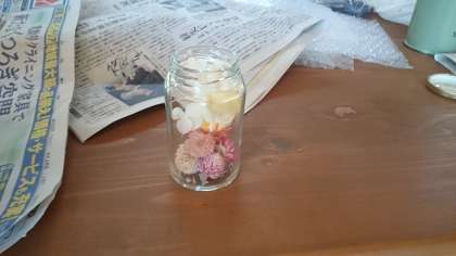 瓶の中に花を入れてオイルを注ぐとできるのですが、一人一人工夫をして作っています。