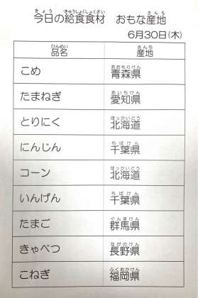 6月30日 今日の給食