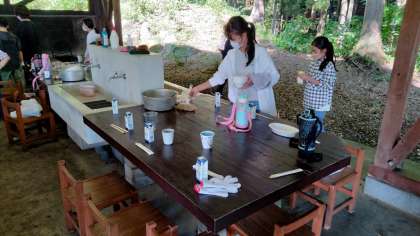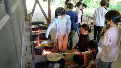 班によって様々な姿を見せてくれていますが、いくつかの班はかまどの火を見ている人と、後片付けをする人、お皿や牛乳などを準備する人、と見事に分担していました!