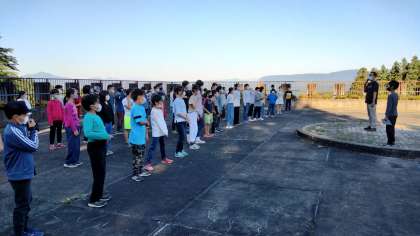 子供たちは、早くから起き出してゴソゴソとしている子、ギリギリまで寝ている子、と様々でしたが、朝の放送がかかると、みんな支度を始めていました。朝会のスタートに遅れてしまった班がいくつかあったのはご愛嬌でしょうか!?