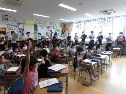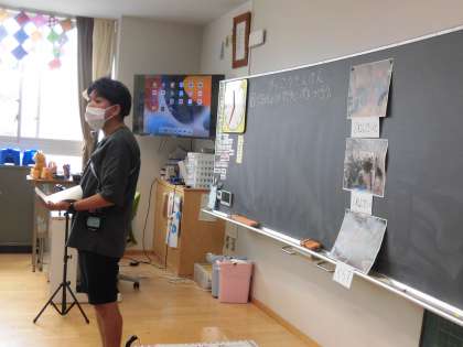 (3枚目の写真は、研究授業後の先生方の協議会の様子です。