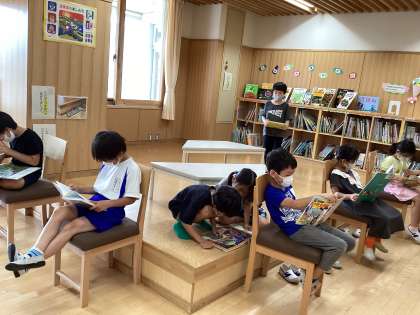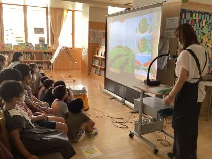 明日の給食は、「本DEランチ」です。絵本にまつわるメニューが出てきます。司書の先生が、その絵本の読み聞かせをしてくださいました。すいかがプールになってしまうお話でした。明日の給食ですいかを食べるときに、絵本のことを思い出すでしょうね。