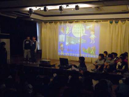 パソコンで自分たちでスライドを作り、工夫していました。
