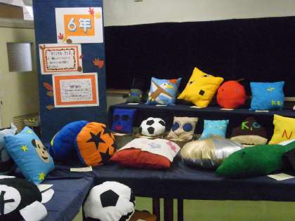 6年「オリジナルグッズ」自分の一番ほしいオリジナルなグッズを、手ぬいやミシンぬいを活用して作り上げました。うわー、これほしいなあと思うような作品の数々!